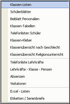 Vielfältige Druckmöglichkeiten aus dem Listen-Menü (siehe auch Etiketten / Serienbriefe).