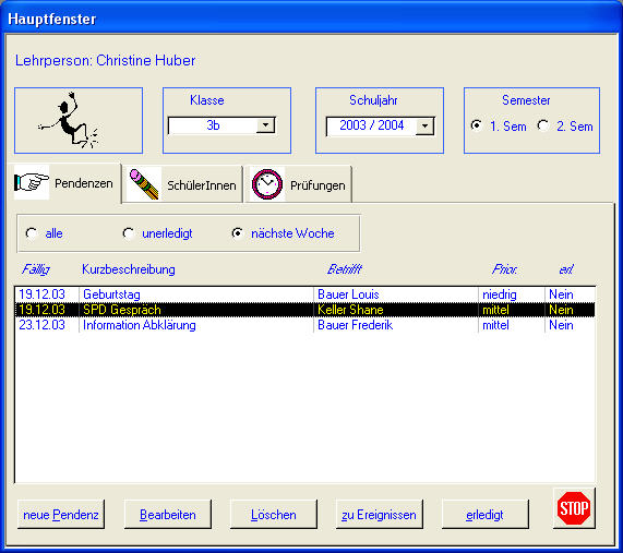 Die Seite mit den Pendenzen der nächsten Woche wird im Lehrermodul als erstes angezeigt.